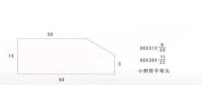 | 100×30×12cm(斜边) 80×14×17cm(斜边) 75×35×12cm(斜边) 75×46×15cm(斜边) 75×30×12cm(斜角斜边3公分边) 75×30×12cm(不斜角斜边3公分边) 75×22×12(小斜边) 50×40×15(斜边) 50×35×12(斜边) 50×30×12(斜边) 50×25×10(斜边) |